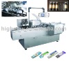 Product explanation this cartoning machine is suitable for packing pharmaceutical aluminum plastic and other related similar content compact with automatic fish folding, forming. Opening and loading, batch number printing as well as sealing tec process. It adopts once something unexpected happens when its operating. It can stop and display the reasons automatically. It is convenient to slove the troubles in time. This machine can be used seperately, and also can used with other blister packing machines. Technical parameter Electric power: AC380V three-phrase and five-wire 50HZ total power 1.5kw Production capacity: Rotation speed 50-120 b/min Speed of folding machine: 50-120b/min Volume of consumption: 20m3/h(pressure0.5-0.7Mpa) Packing material: Box: 250-300/m2(according to its dimensions to confirm) Specifications: Max Size(L*H *W)200*80*60mm Min. Size(L*H*W)65*20*15mm Leaflet: Paper weight: 55-65g/ m2 Specifications: Max. Size(L*W)260*190mm Min. Size(L*W)100*100mm Overall dimension: 2700*1400*1650 Weight: Approximately1.2tons
